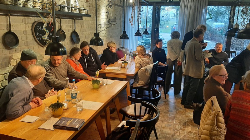 Wir starteten mit Kaffee und Kuchen. Die offizielle Vorstellung endete planmäßig um 15.30 Uhr, sodass ausreichend Zeit für Kennenlernen und Austausch blieb. Literarische Beiträge sorgten zusätzlich für Freude bei den Anwesenden. Dabei wurden auch neue wie bereits etablierte Initiativen vorgestellt, darunter das Lesekränzchen und der Lyriksalon von Lena Herdtfelder und Günter Weber.